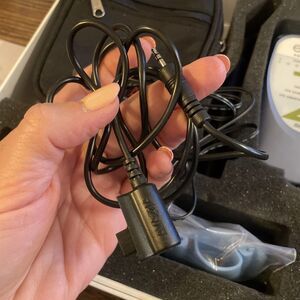 In nice condition. Includes the item shown as well as the owners manual. Includes the actual device, lead wires for the blue finger smoother as well as the pencil electrode and pencil lead wire. Carrying case included as well as the box. Box has some writing on it. Device was over. 350 new.