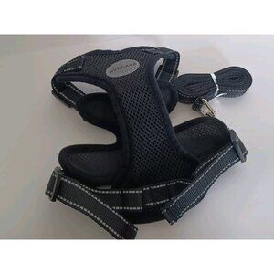 This soft and breathable pet harness comes with a leash, featuring a reflective strip for added safety. Available in size SM and stylish black, it's perfect for your pet's comfort and security.