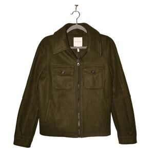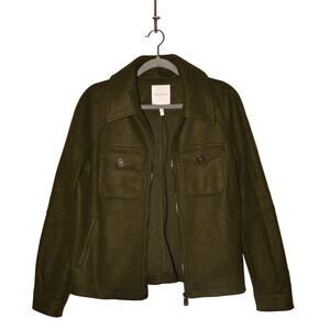 AVEC LES FILLES $109 Olive Green Zip Front Collared Jacket Pockets Small