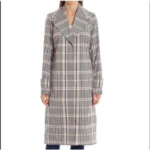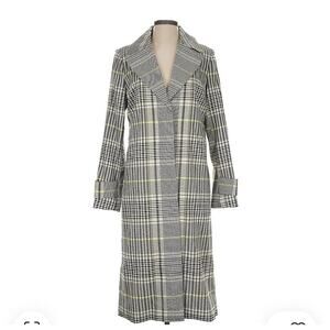 AVEC LES FILLES Gray Plaid Fall Spring Long Trench Coat Size Small