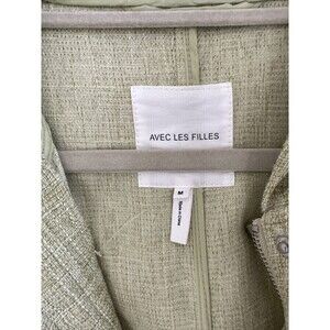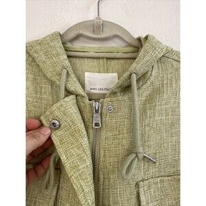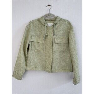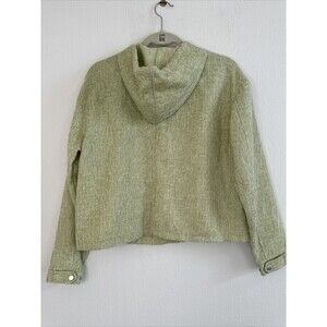 AVEC LES FILLES Green Knit Linen Blend Zip Front Hooded Boxy Jacket Size M