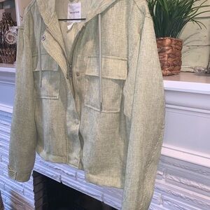 AVEC LES FILLES Green Knit Zip Front Hooded Boxy Jacket Size Large. Great used condition.
