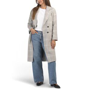 AVEC LES FILLES Light Grey Mix Wool Blend Plaid Relaxed Double Face Walker Coat