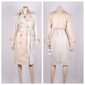AVEC LES FILLES Mixed Media Plaid Cotton Trench Coat