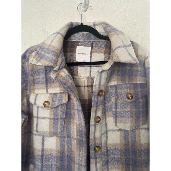 AVEC LES FILLES Relaxed Fit Lavender Beige Plaid Fall Shacket Size Large