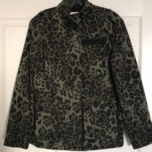 This AVEC LES FILLES utility jacket is an excellent preworn condition. It features a camouflage inspired leopard print design. There are multiple snap pockets and has an oversized fit.