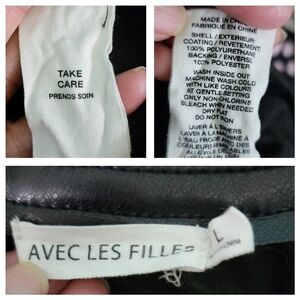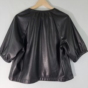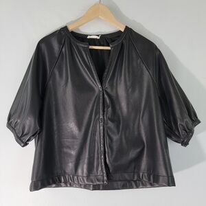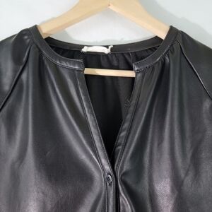 AVEC LES FILLES Women's Black Vegan Leather Too Jacket Sz L V-neck Half Sleeve