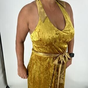 AVEC LES FILLES Velvet Halter Maxi Dress Size 10 Gold Gorgeous