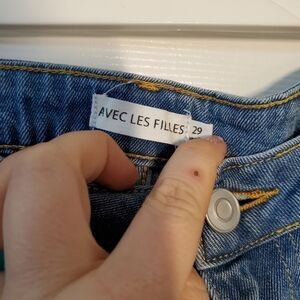 AVEC Les Filles Distressed and Raw Hem Straight Leg Cropped Jeans