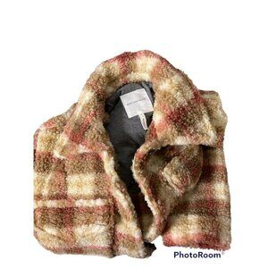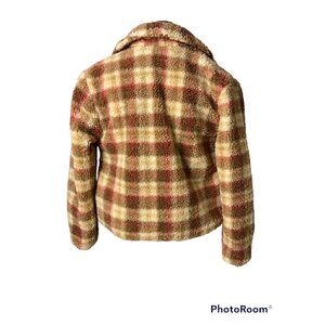 AVEC Les Filles Women's Sherpa Short Plaid Jacket Size Small New