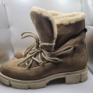 AVELLINI PORTUGAL SUEDE SHERPA SHEARLING LACEUP BOOTS. Rich beige suede upper has decorative stitching on ankle.LACEUP closures that go above your ankle. Coziest plushest shearling Sherpa lining. Barely worn, clean interior and exterior. Photos show condition. Size tag is European 39, equivalent to WOMENS 8.No smoke, odors or pets. No stains or tears.