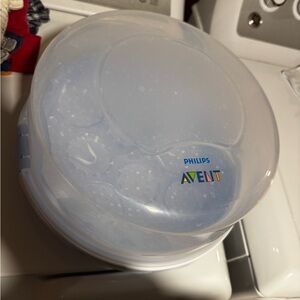 Efficient microwave sterilizer with a blue interior. Ideal for baby bottles and accessories.