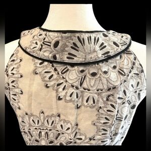 This Aventura dress is a sleeveless, lightweight piece designed for both comfort and style. Made from a blend of 55% linen and 45% cotton for the shell, and fully lined with 100% cotton voile, it offers breathability and ease of wear. The dress features an intricate black mandala-inspired pattern on a neutral background, creating a visually striking design. The neckline is detailed with subtle piping, adding definition to its feminine and relaxed silhouette. Ideal for warm-weather outings, this dress embodies casual elegance with its natural fibers and timeless aesthetic. This dress reflects Aventura's commitment to quality craftsmanship and sustainable materials.