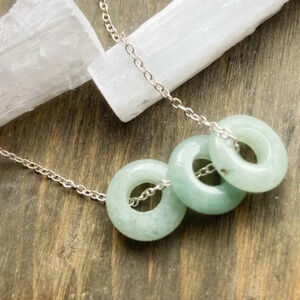 AVENTURINE TRIO DONUTS SILVER DAINTY NECKLACE