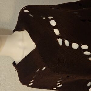 AVENUE 9 Dark Brown Knit Assymetric Fringe Peekaboo Shawl Hippie Poncho