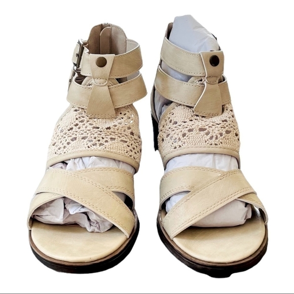 AVENUE CLOUDWALKERS Abby Beige Crochet Block Heel Sandals Size 9M