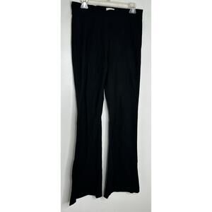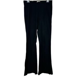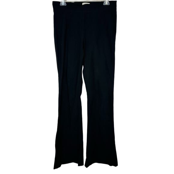 These AVENUE MONTAIGNE Black Signature Crepe Modal BELLINI Flared Trousers in size 10 feature a pull-on closure and a regular fit. They are suitable for various occasions such as casual, formal, or business wear. The trousers have a flared leg style with a 30-inch inseam and are crafted from a blend of spandex and modal. Designed in the United States, they are recommended for hand wash only.