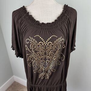 AVENUE WOMEN'S PLUS SIZE TUNIC SIZE 18/20 BROWN WITH GOLD DETAIL