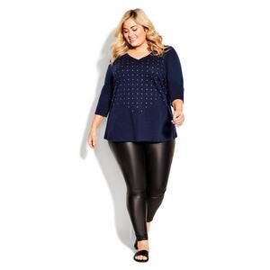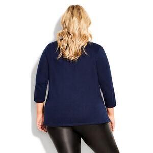 AVENUE Women's Navy Sparkling Stars V-Neck 3/4 Sleeve Tee | Size 30/32 NWT