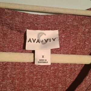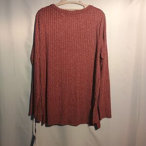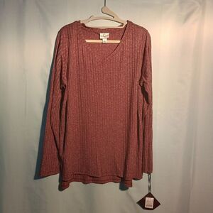 AVENUE Women’s Plus Size Long Sleeve Ribbed V-Neck Top Red Maroon L NWT