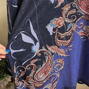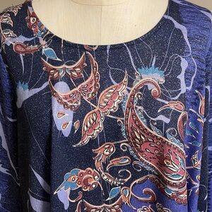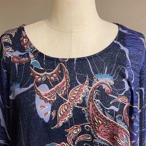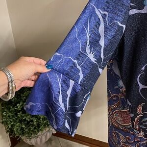 AVENUE women’s plus blue paisley metallic top tunic size 22/24 bell sleeve 3/4