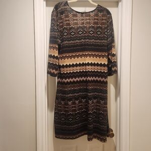 Avenue plus size wrap dress with tulip hem very Y2K stlye dress brown tan and black
