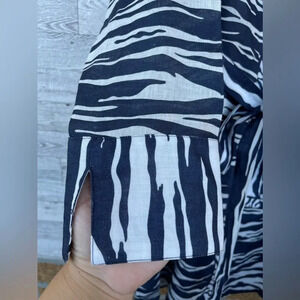 Chemisier Averardo Bessi Firenze in 100% Linen depicting a zebra design . Oversized fit button down dress with belt elegant and one of a kind in excellent condition