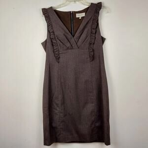 AVERLY Women's Size 10 Brown Gray Blended Ruffle V-Neck Sleeveless Dress