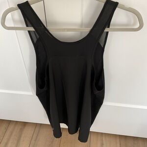 Sleek black athletic top with mesh. Soft and breathable fabric.