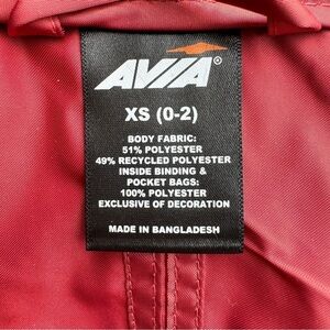 New With Tags. AVIA’s Commuter Jacket keeps you dry with a water-resistant finish and an adjustable fit, designed for everyday errands, travel, and light rain in a bold fire-red tone.