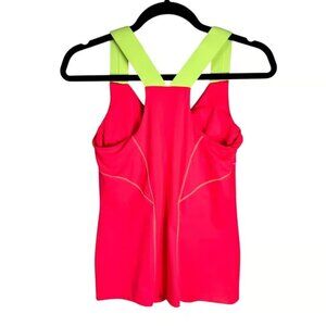 AVIA Neon Pink & Yellow Active Tank Top, Medium, Racerback, Built-in Support
