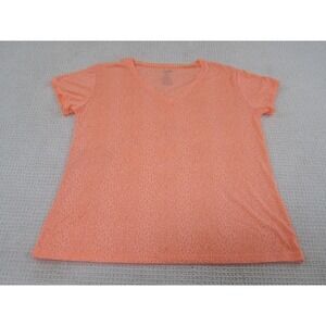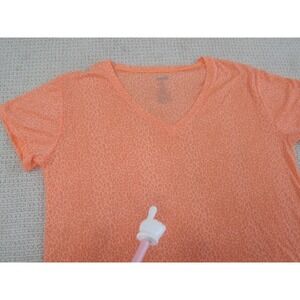 AVIA Shirt Womens 2XL Orange V-Neck Short Sleeve Stretch Cheetah Print