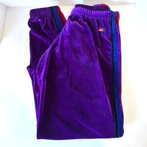 AVIATOR NATION 5 Stripe Velour Velvet Sweatpants in Purple Size S