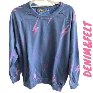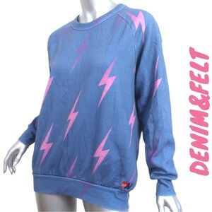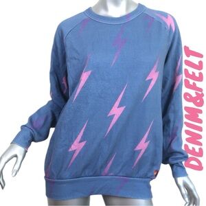 AVIATOR NATION Blue/Pink BOLT REPEAT CREWNECK SWEATSHIRT | PRELOVED | RARE EUC💎