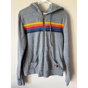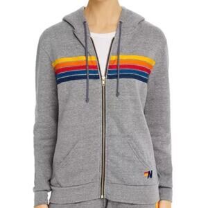 AVIATOR NATION Classic Gray 5 Rainbow Stripe Zip Hoodie S