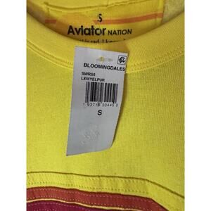 AVIATOR NATION Five Stripe Crewneck Sweatshirt In Lemon Yellow Sz S NWT $185