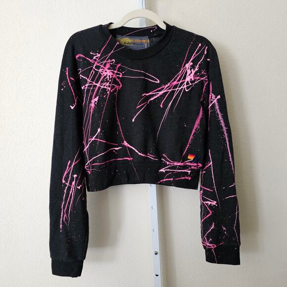 AVIATOR NATION NWT Artist Collection Pink Splatter Paint Cropped Sweatshirt Sz L