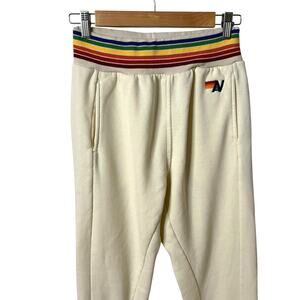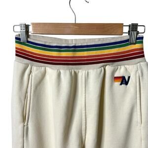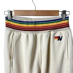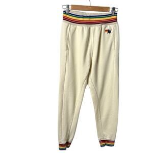 AVIATOR NATION Rainbow Stripe Cream Jogger Sweatpants Small
