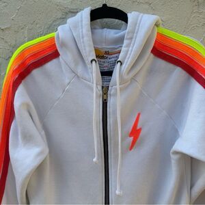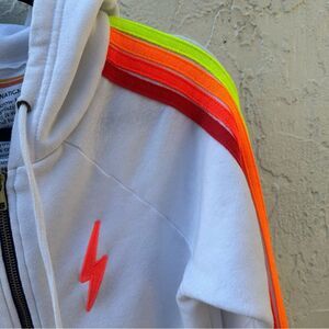 AVIATOR NATION Jacket Women XS Hoodie Full Zip Neon Stripe Lightning Bolt