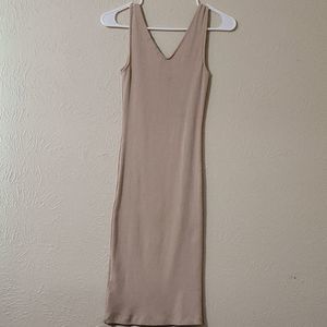 AVICI Tan Button Down Ribbed Dress S