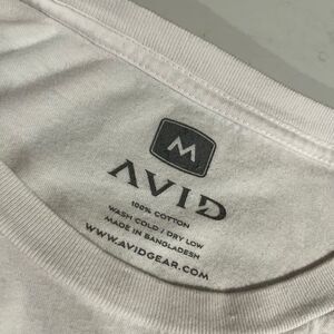 AVID long sleeve white cotton t-shirt. Please note: very small hole (see pic) otherwise in great condition.