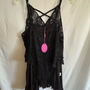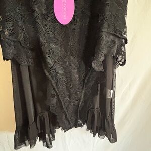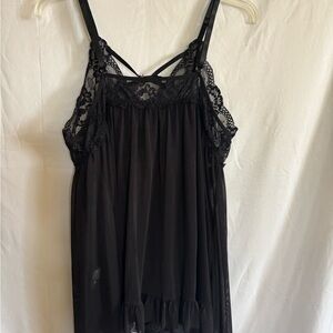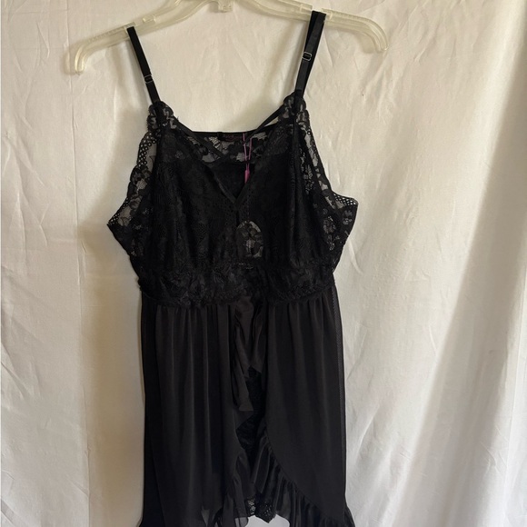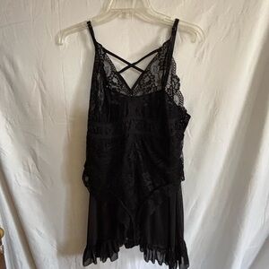 Experience comfort and elegance with this black lace sleepwear. Perfect for a cozy night in.