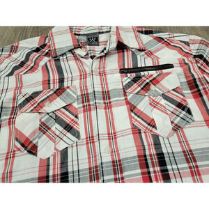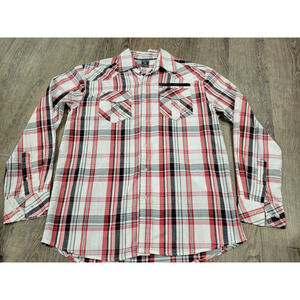 AVIREX Vintage Y2K Shirt White Red Black Plaid Button-Up Long Sleeve 2000s Large