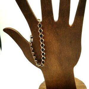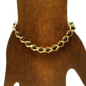 Avon Bracelet Captured Treasures Gold-tone Curb Link Faux Black Onyx Beaded Accents