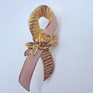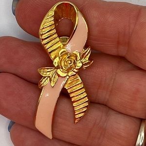 Pink Ribbon on Gold tone