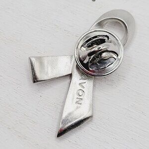 AVON Breast Cancer Awareness Ribbon Tie Tac Lapel Pin Satin Silver Tone Pink