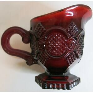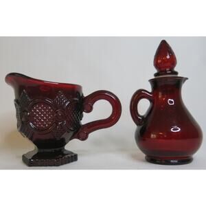 AVON Cape Cod Ruby Red Glass Set 2 Pitchers Strawberry Candle Vintage 1980's