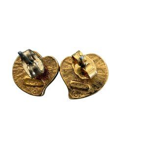 AVON GOLD TONE PIERCED EARS STUDS BLACK ENAMEL RHINESTONES