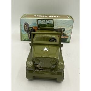 It's a collectible item from the 1970s, designed to resemble a U.S. Army Willys Jeep.