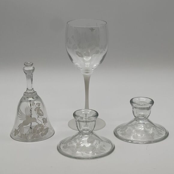 Set of 4 AVON Pieces 24% Full Lead Crystal Wine Goblet, Bell, 2 Candlestick Holders Footed